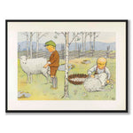 Poster med en vacker illustration från Elsa Beskows barnbok "Pelles nya kläder" som först publicerades 1907.