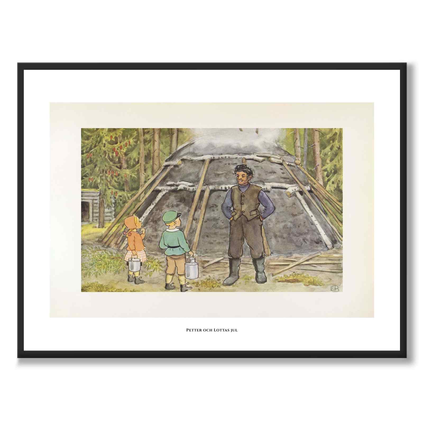 Poster med illustrationen Petter och Lottas jul (år 1947) av den svenska författaren och illustratören Elsa Beskow (1874–1953).