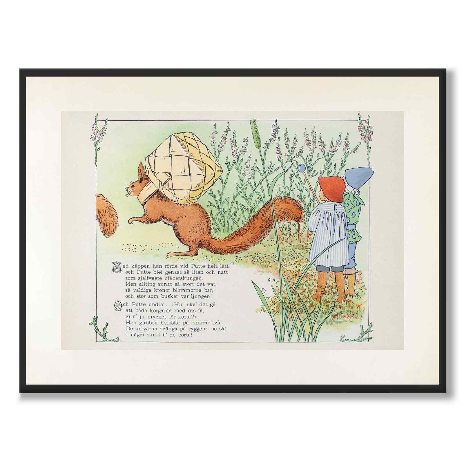 Poster med en illustration ur Puttes äfventyr i blåbärsskogen, en älskad svensk barnbok skriven och illustrerad av Elsa Beskow, från år 1901. Det är en av Beskows mest kända verk och anses vara en klassiker inom svensk barnlitteratur.