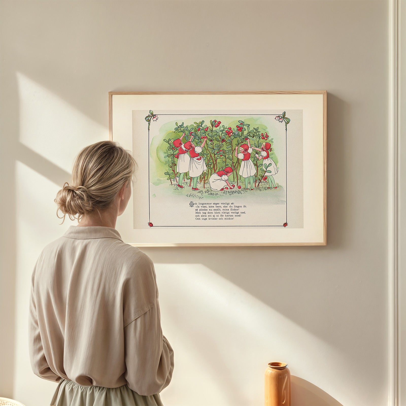 Poster med en illustration ur Puttes äfventyr i blåbärsskogen, en älskad svensk barnbok skriven och illustrerad av Elsa Beskow, från år 1901. Det är en av Beskows mest kända verk och anses vara en klassiker inom svensk barnlitteratur.