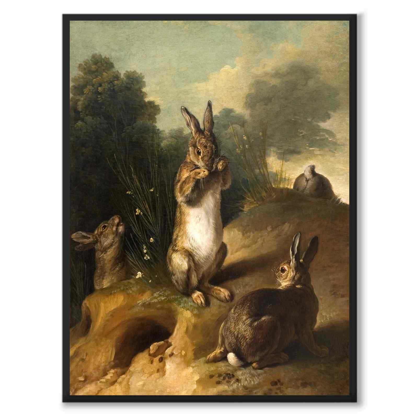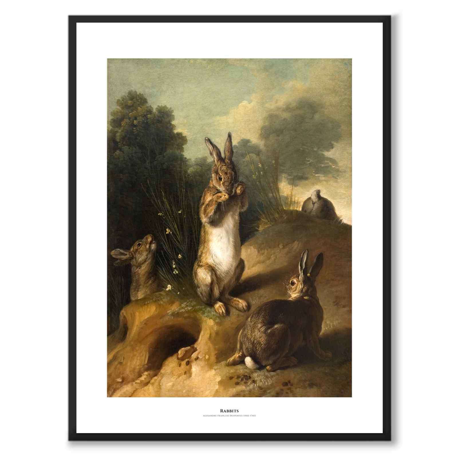 Poster med målningen "Rabbits" av konstnären Alexandre-François Desportes från 1720-talet.