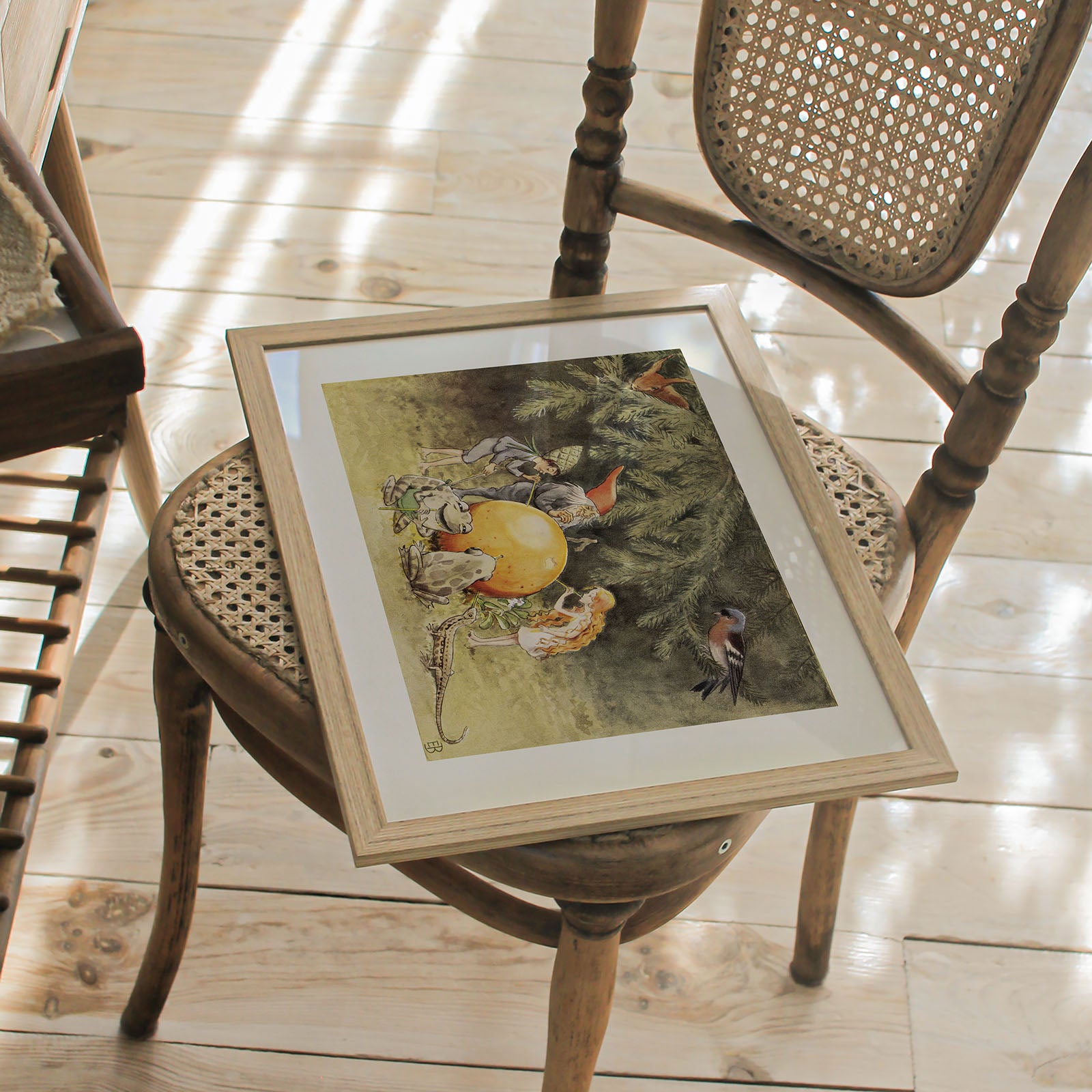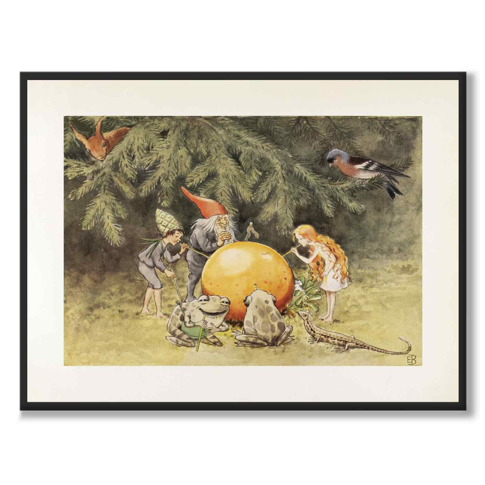 Älvan visar sitt fynd för skogens invånare. Tillsammans försöker de lista ut äggets hemlighet, medan älvan vårdar det med stor omsorg. Men snart uppenbaras sanningen: ägget är egentligen en apelsin som har fallit från en fruktlast på en båt. Älvan, som först blir besviken över att det inte är ett riktigt solägg, lär sig att även vardagliga ting kan vara fulla av magi och skönhet.
