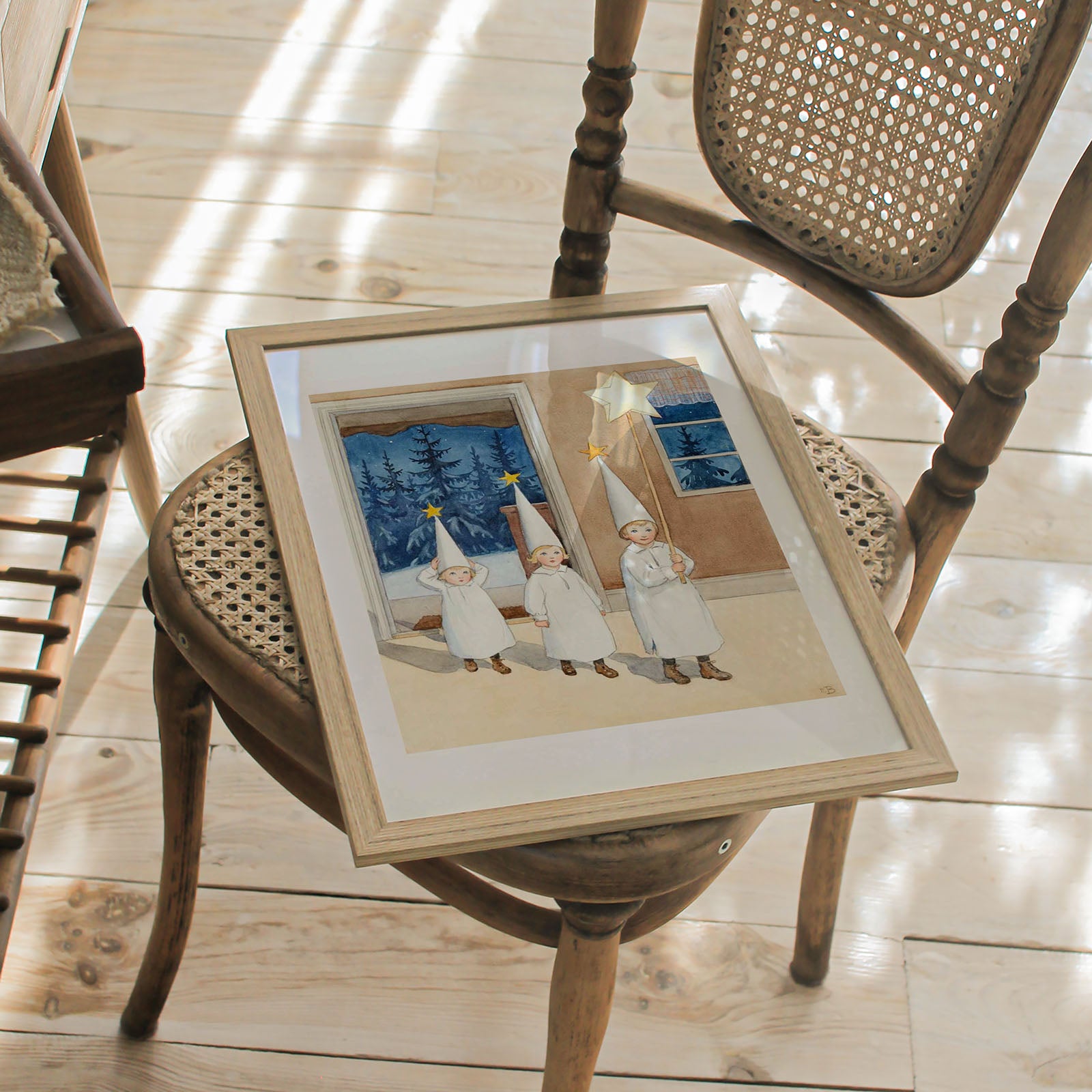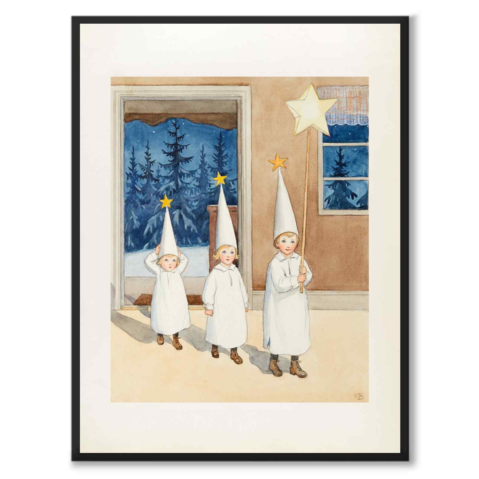 En klassisk julposter illustrerad av Elsa Beskow. Illustrationen publicerades i Årets Saga år 1927 och heter Januari.