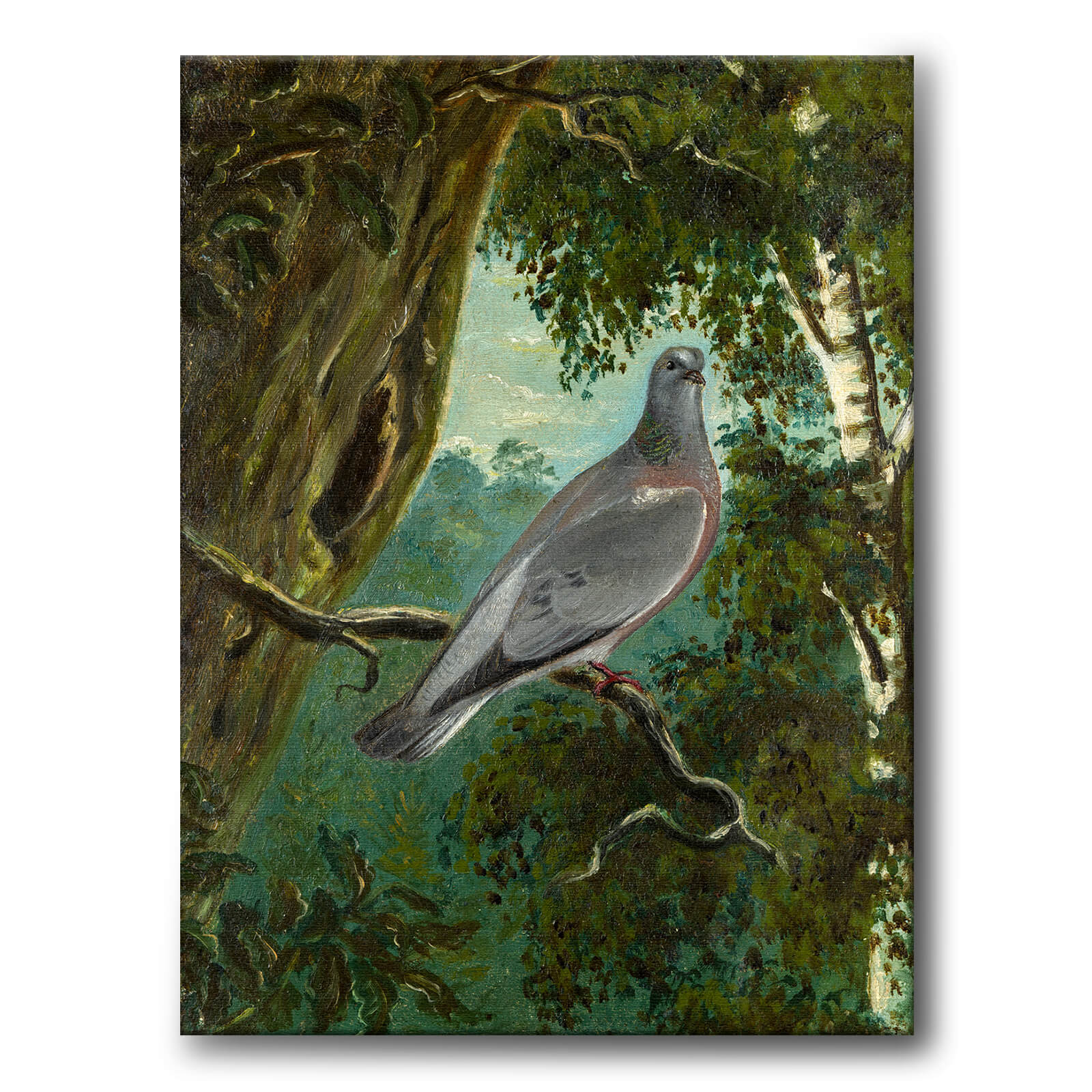 Canvastavla med målningen Skogsduva av Bruno Liljefors, Sveriges genom tiderna mest kända naturmålare. Skogsduva är en av Brunos tidigare verk och visar en lugn skogsinteriör med vackra gröna nyanser.