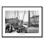 Poster med ett fantastiskt fotografi över Stora Hamnkanalen och Lilla Torget i Göteborg. Fotots perspektiv är från Tyska bron och på bilden ser vi tre män vid sidan av ett flertal båtar. Fotot är taget av Aron Jonason cirka 1890.