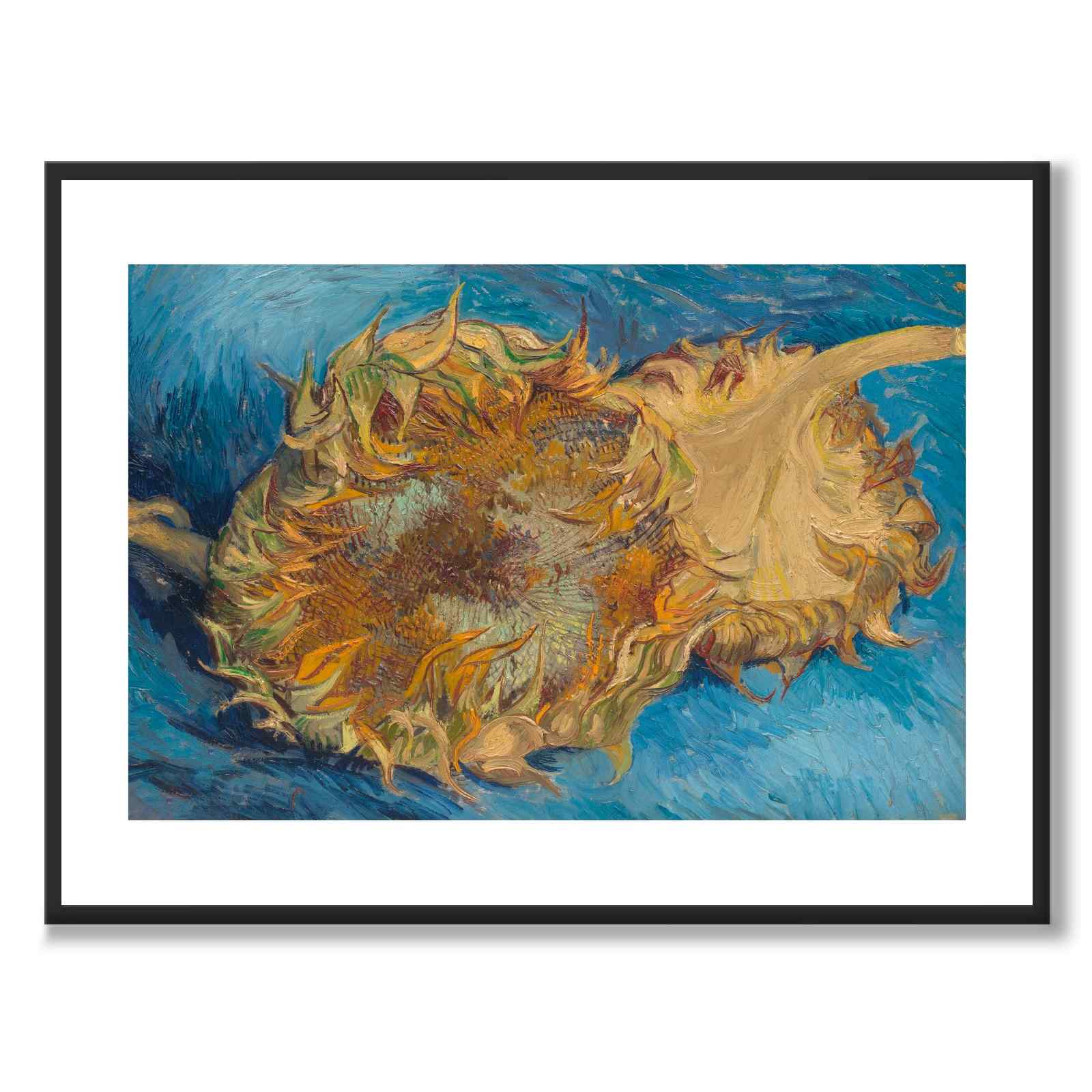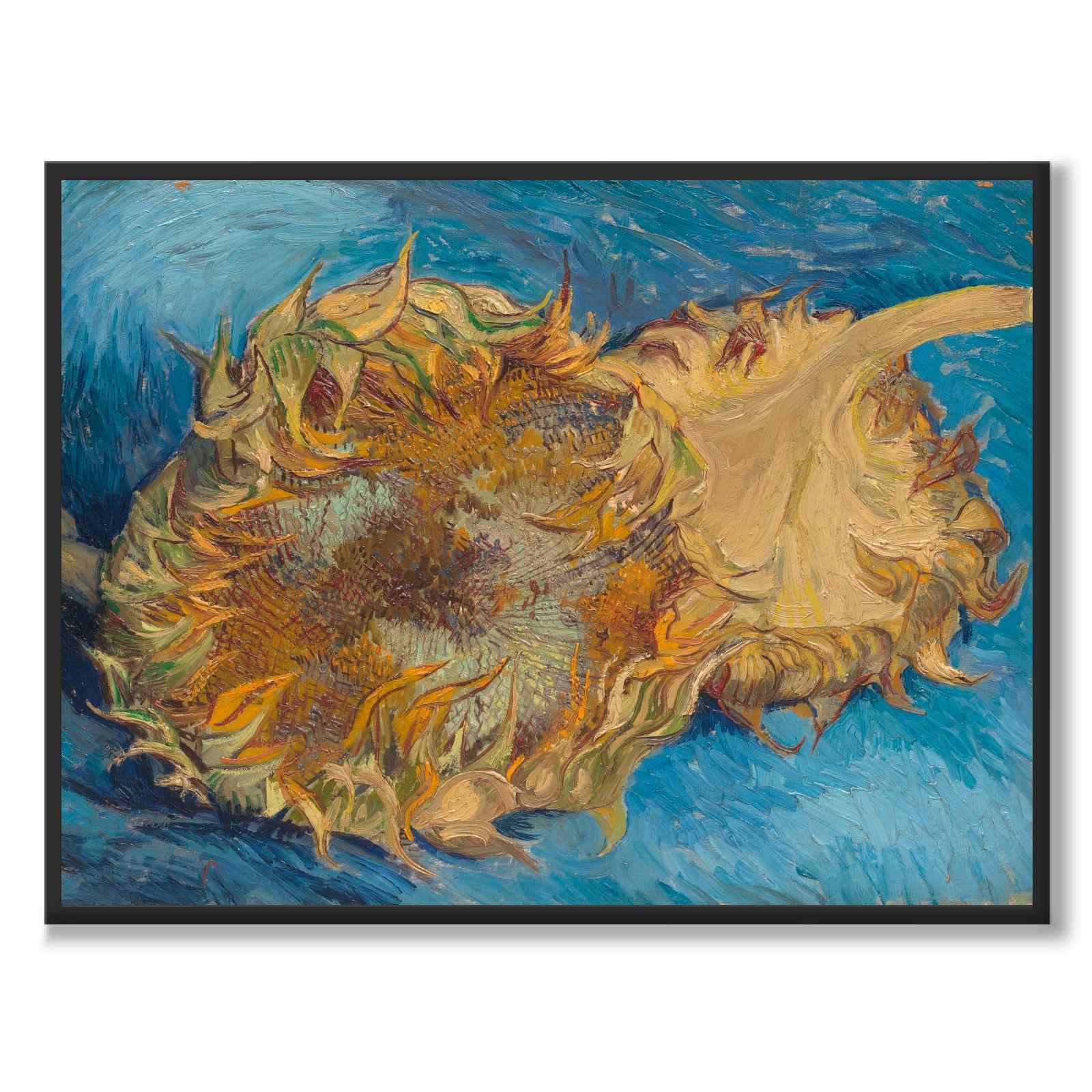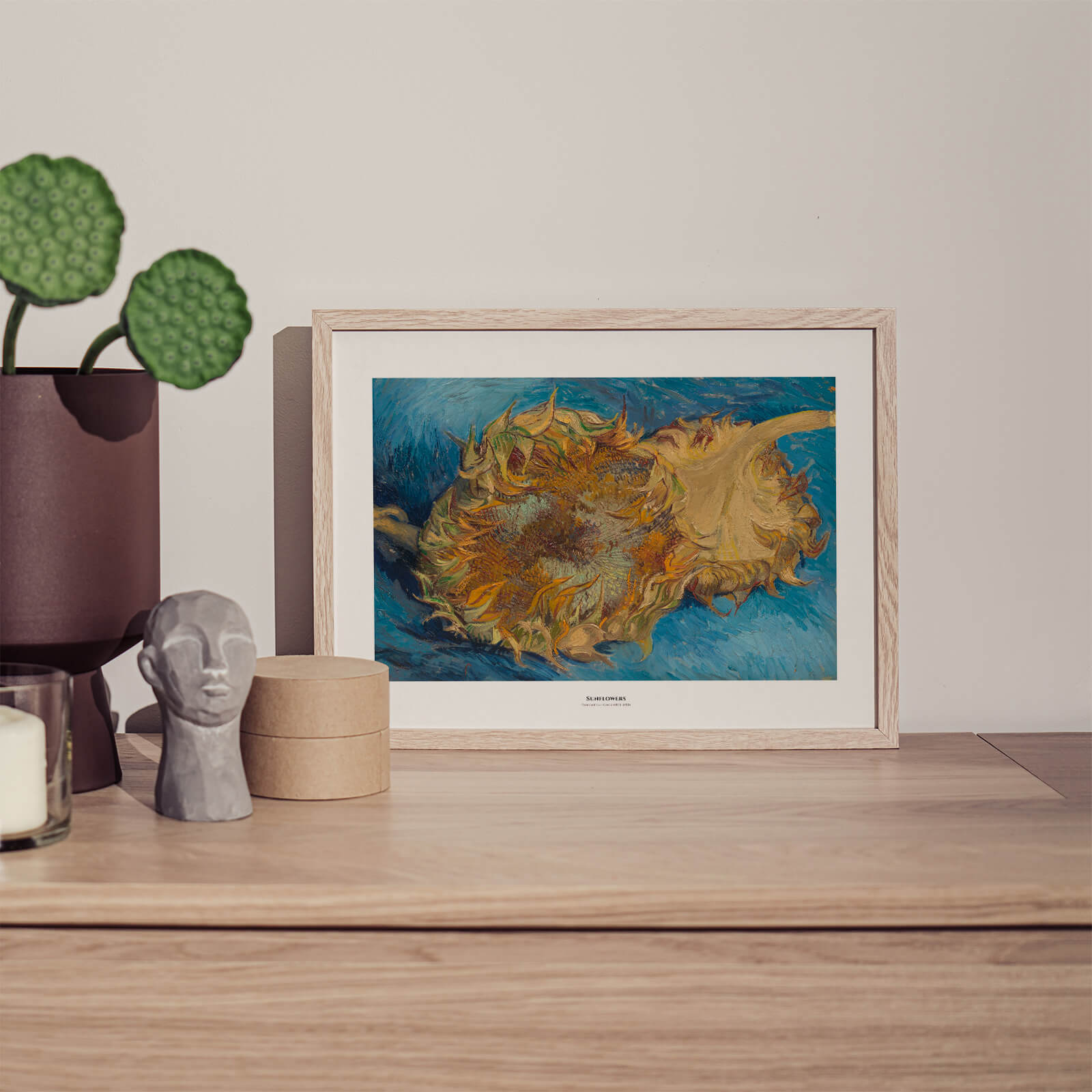 Poster med motivet Sunflowers från 1887 av den impressionistiska konstnären Vincent van Gogh. Motivet föreställer två solrosor mot en blå bakgrund som Van Gogh målade i Paris på sensommaren år 1887.