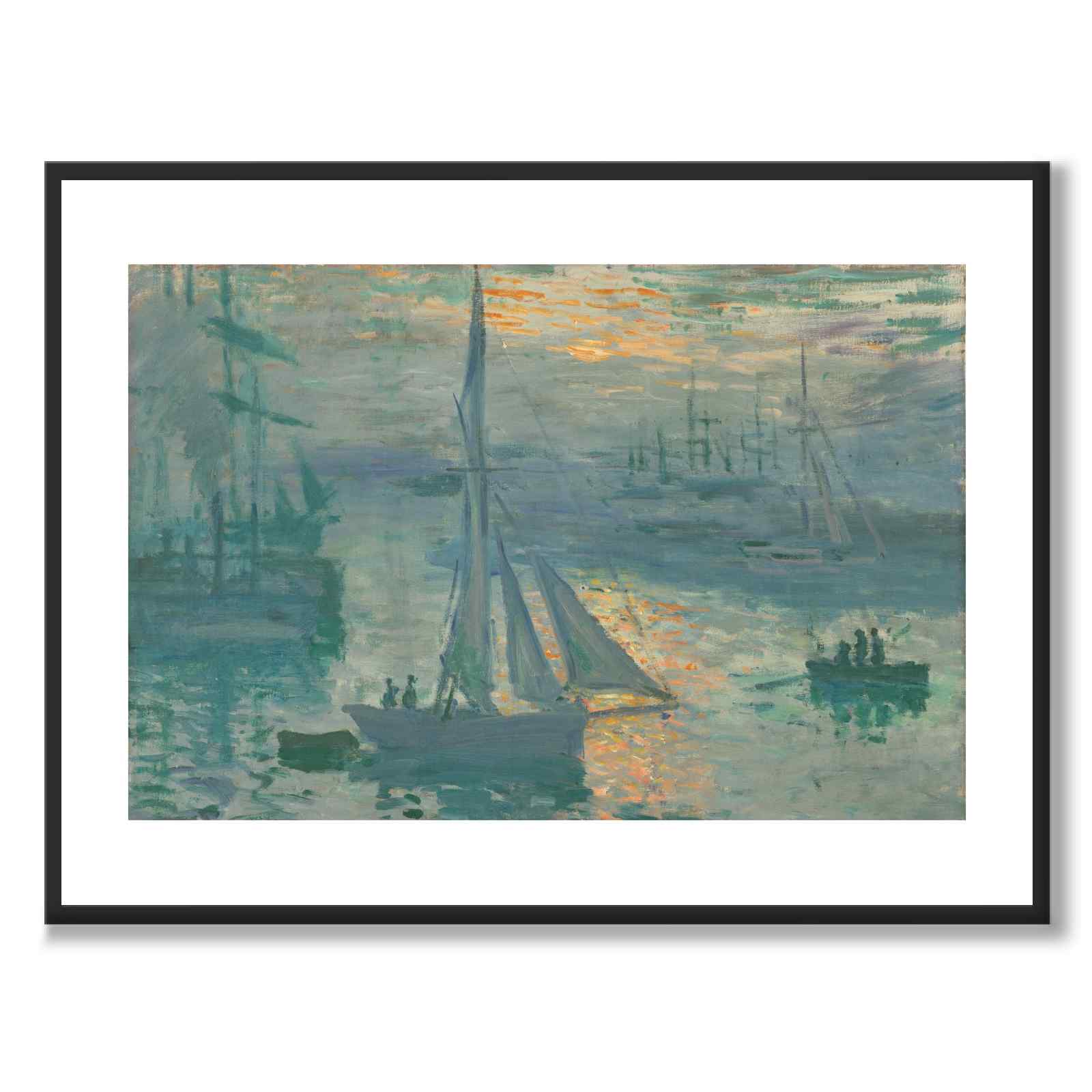Poster med den vackra tavlan Sunrise skapad 1872-1873 av Claude Monet - en historiskt känd fransk konstnär. Motivet är industrihamnen Le Havre på Frankrikes norra kust.