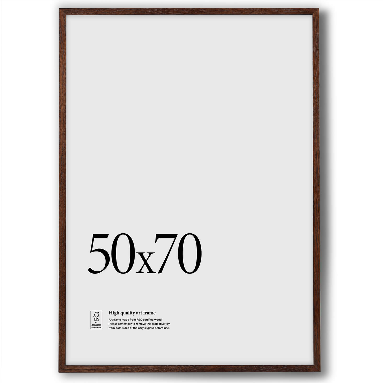 Denna tavelram i mörklaserat trä kommer med kristallklart 1,5 mm plexiglas och passar perfekt till posters i storlek 30x40, 40x50, 50x50, 50x70 och 70x100. Träramens bredd är 12mm och dess djup är 20mm. Samtliga ramar har metallhängare på baksidan vilket gör att de kan hängas både vertikalt och horisontellt. Ramen har vridclips på baksidan vilket gör inramningen mycket enkel och smidig.
