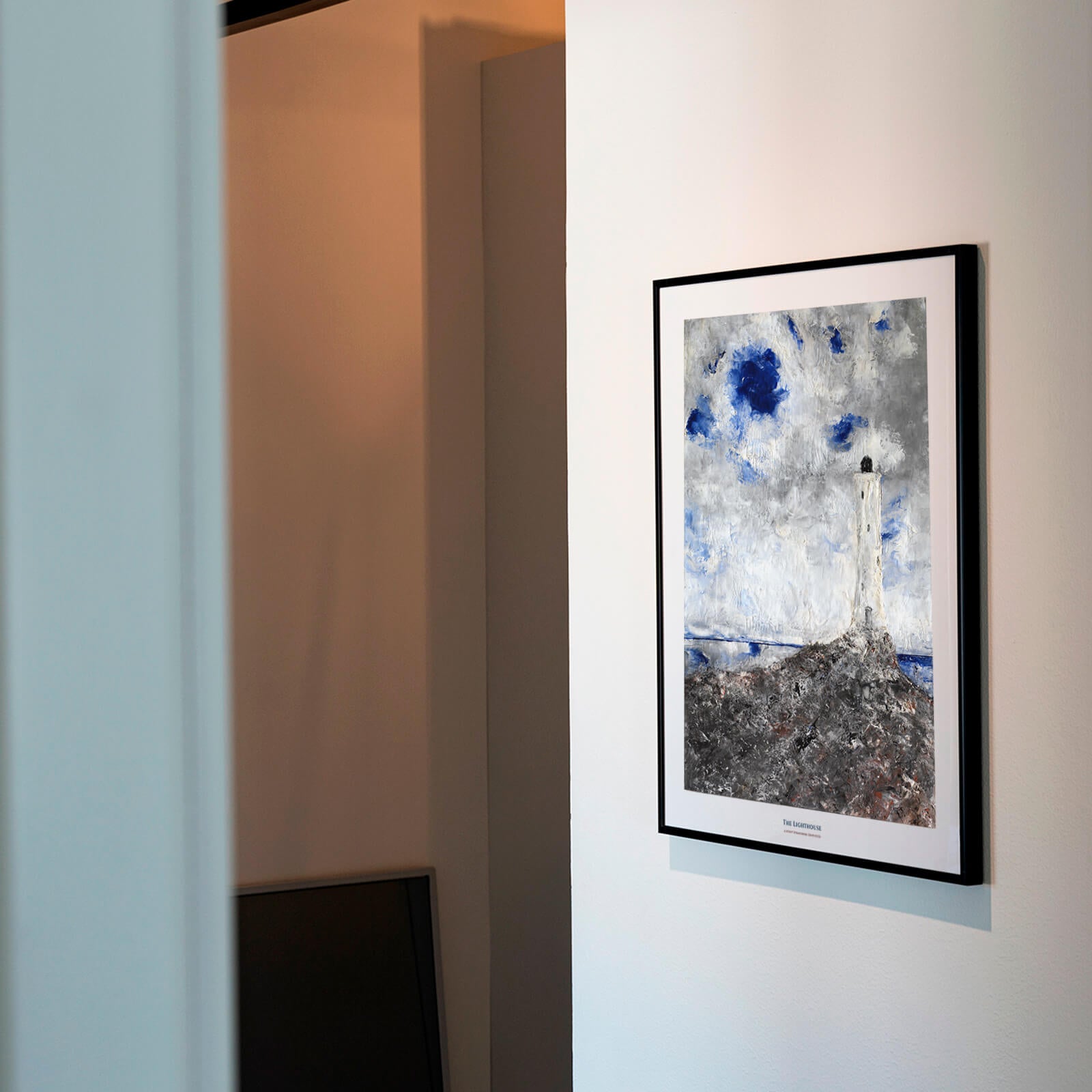 Poster med målning av den ikoniska svenska konstnären och författaren August Strindberg. Målningen heter Fyren (Fyrtornet III) och är målad 1901. Strindberg studerade en tid i Uppsala. Den här målningen gav han som gåva till en vän under den här tidsperioden.