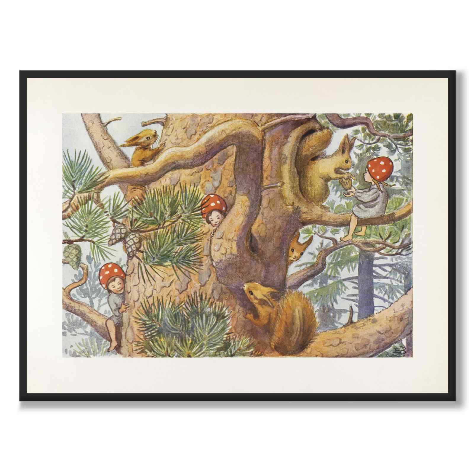 Poster med en illustration ur en av Sveriges mest älskade barnböcker genom tiderna: Tomtebobarnen av Elsa Beskow från år 1910.