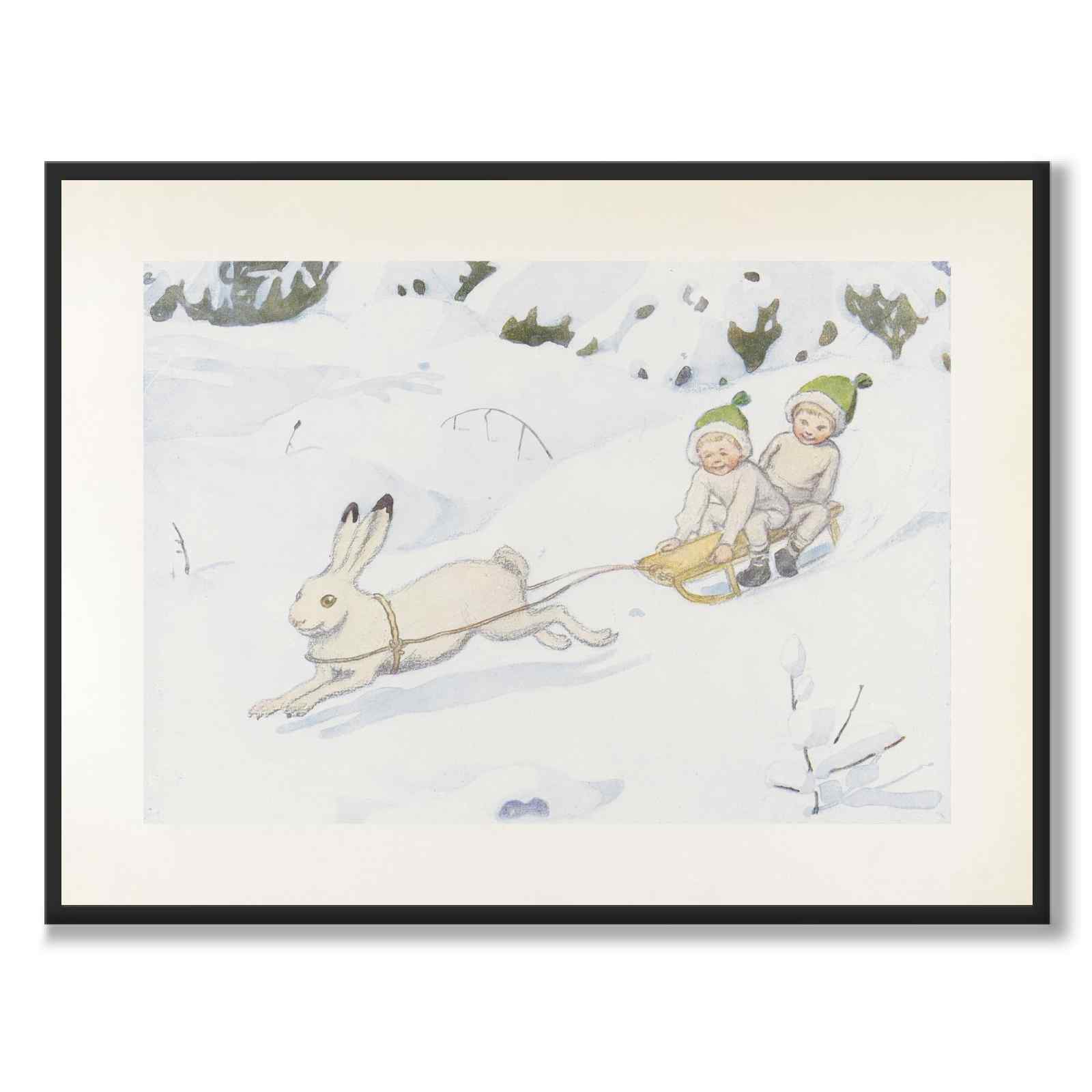 Poster med en illustration ur en av Sveriges mest älskade barnböcker genom tiderna: Tomtebobarnen av Elsa Beskow från år 1910.