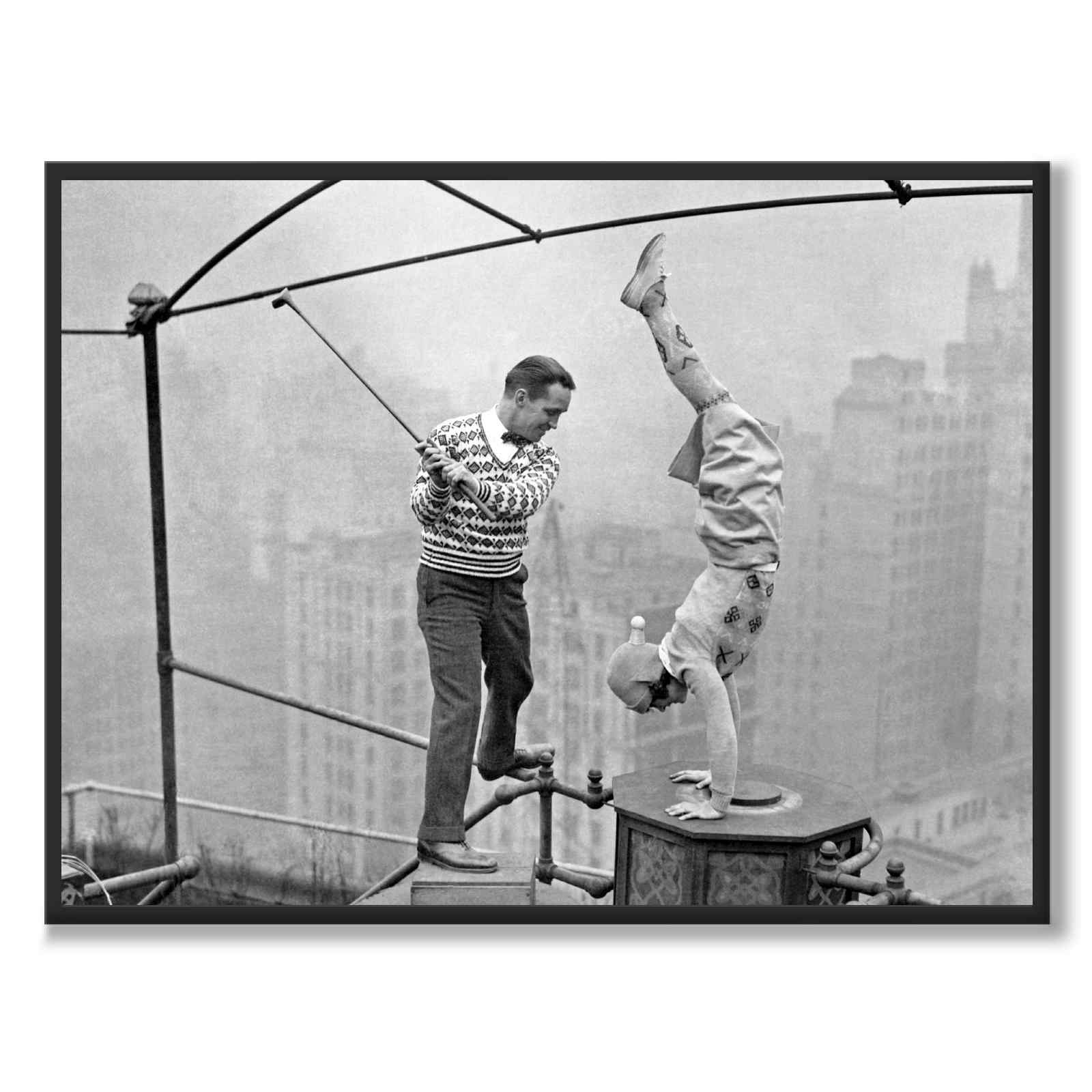 Bilden är troligtvis tagen i New York år 1933 och tyvärr går det inte att få mer information kring bakgrunden till detta våghalsiga nummer.