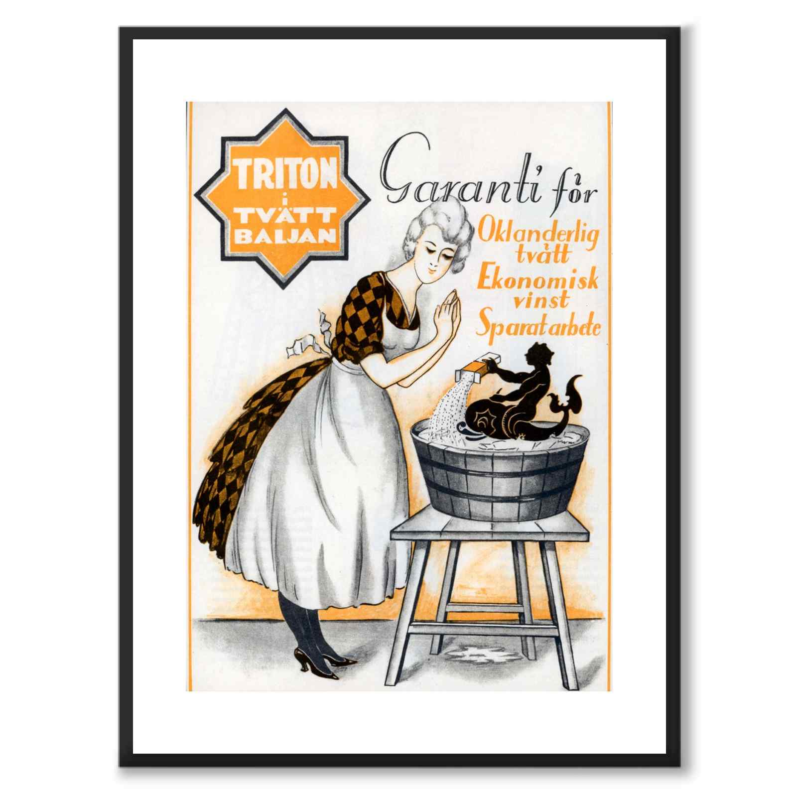 En unik poster med en illustrerad reklam för Triton tvättmedel från 1925.