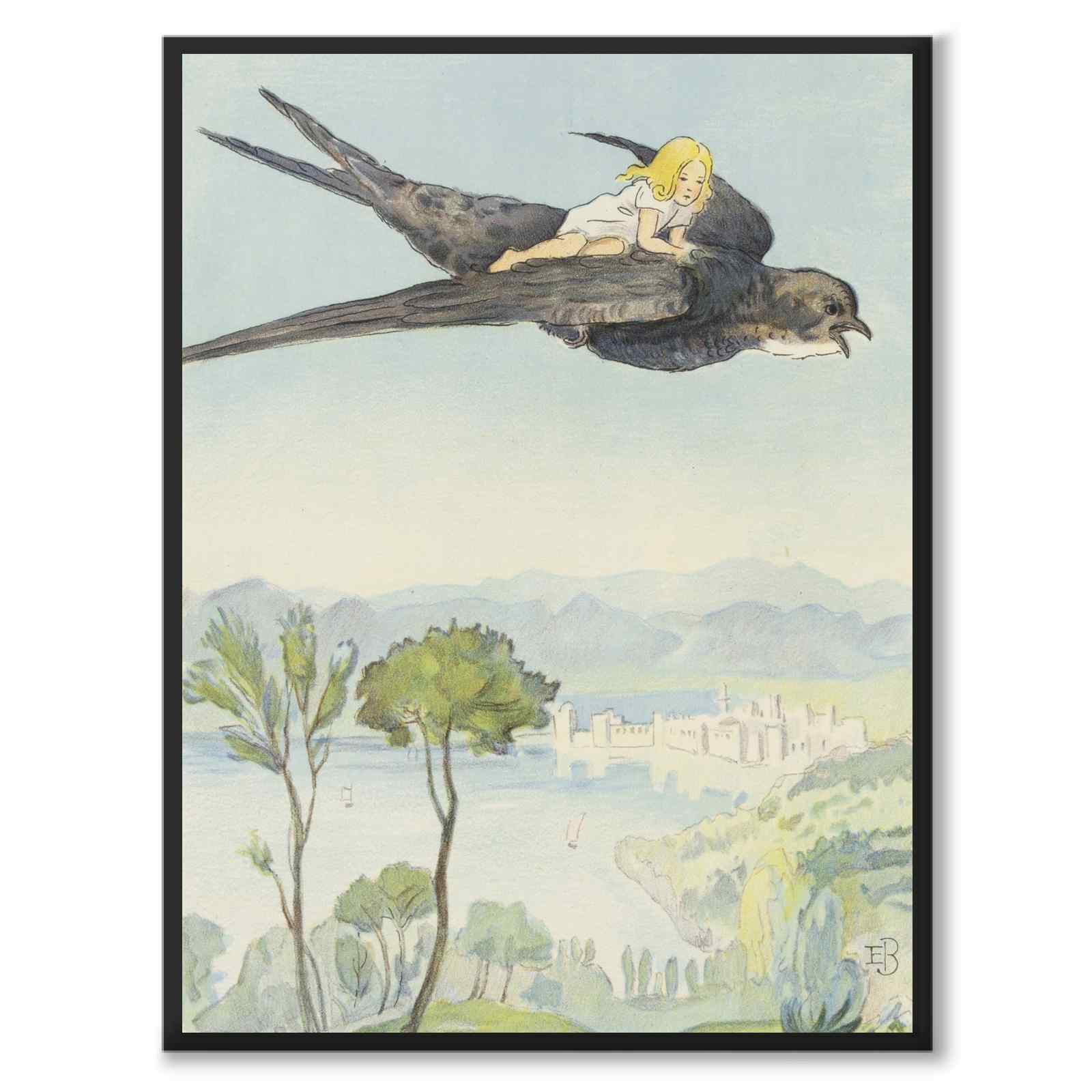 Poster med motiv från den klassiska sagan Tummelisa, skriven av den världsberömda danska författaren H.C. Andersen. Tummelisa, ursprungligen publicerad 1835, är en av Andersens mest älskade berättelser. Illustrationerna ur den här upplagan från år 1924 är ritade av ingen mindre än svenska ikonen Elsa Beskow, vars arbete som författare och illustratör har blivit klassiker inom svensk barnlitteratur.