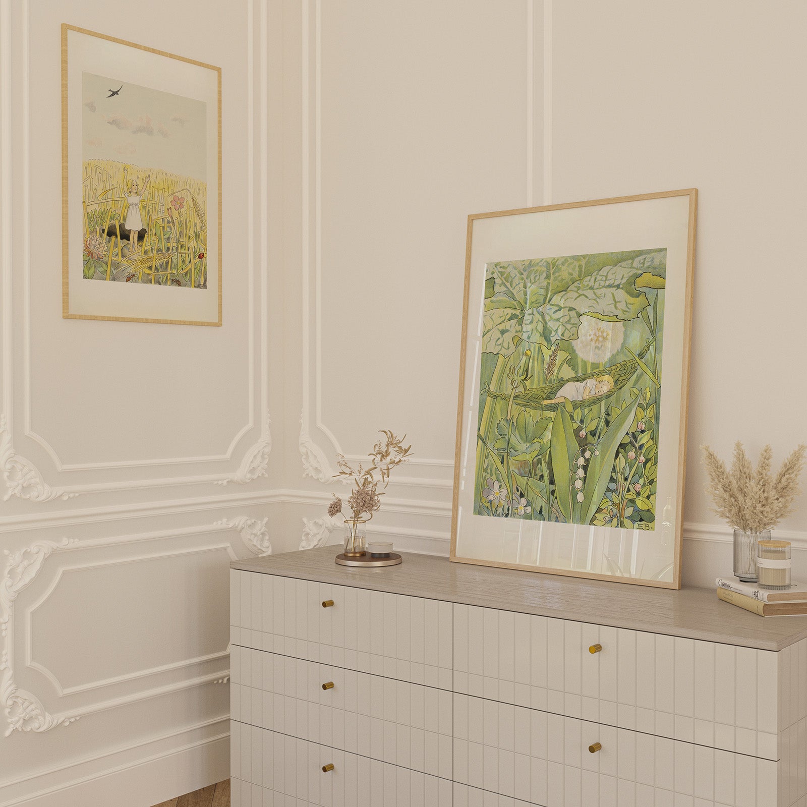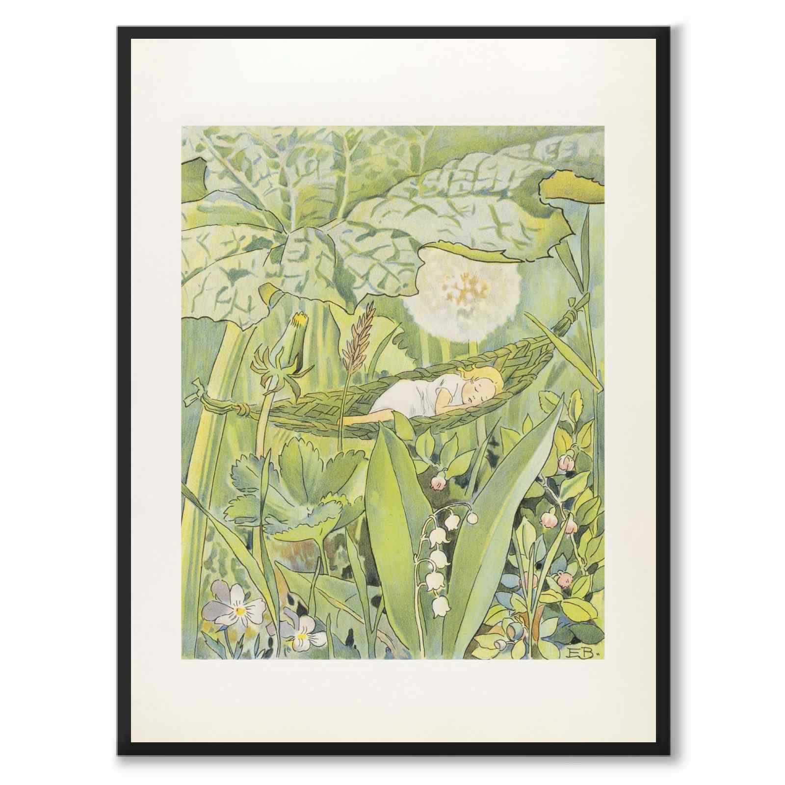 Poster med motiv från den klassiska sagan Tummelisa, skriven av den världsberömda danska författaren H.C. Andersen. Tummelisa, ursprungligen publicerad 1835, är en av Andersens mest älskade berättelser. Illustrationerna ur den här upplagan från år 1924 är ritade av ingen mindre än svenska ikonen Elsa Beskow, vars arbete som författare och illustratör har blivit klassiker inom svensk barnlitteratur.
