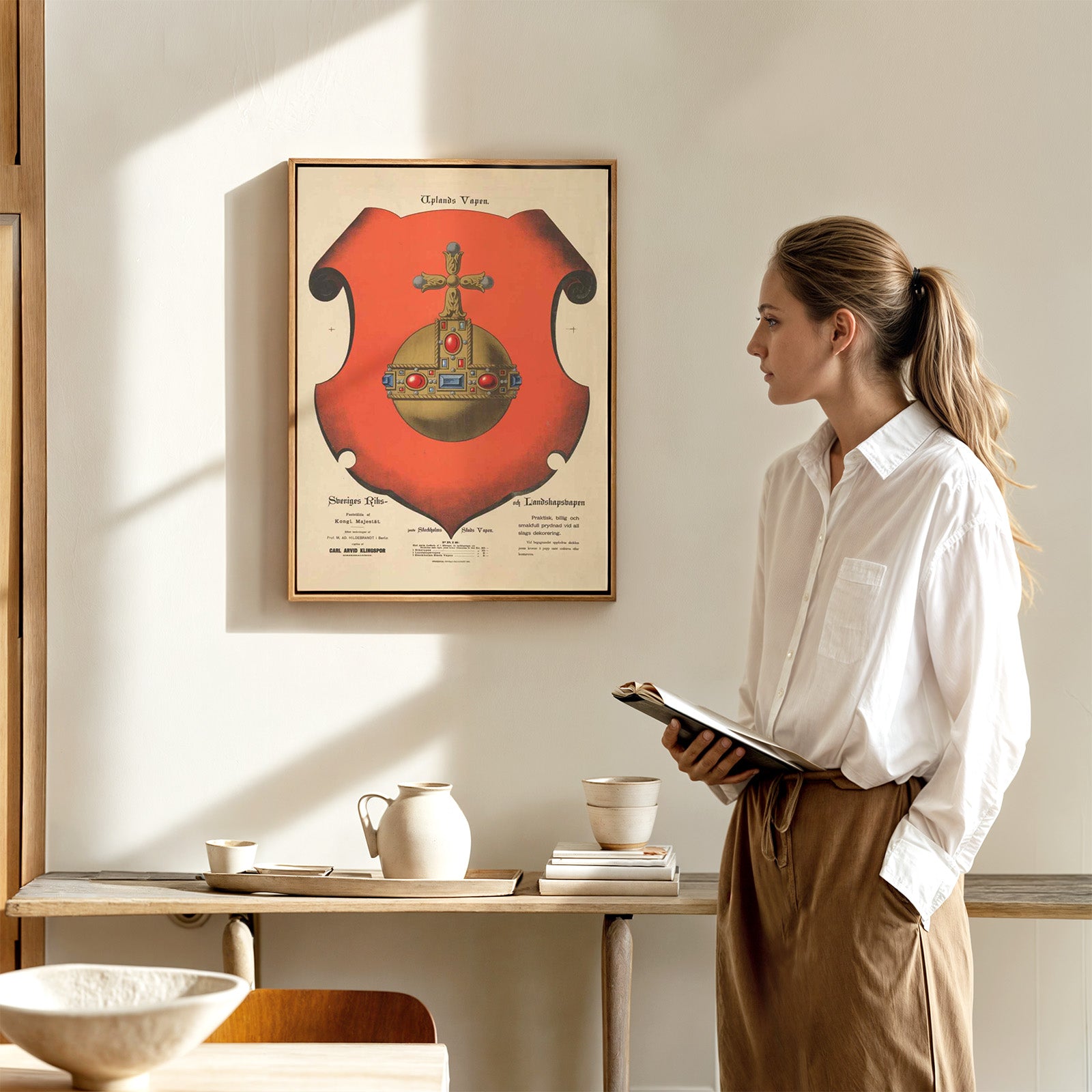 En vacker ritning med det heraldiska vapnet för landskapet Uppland från 1800-talet.