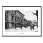 Poster med bild från 1902 på Vaksalagatan i Uppsala. Bilden är tagen i korsningen Vaksalagatan - Dragarbrunnsgatan.