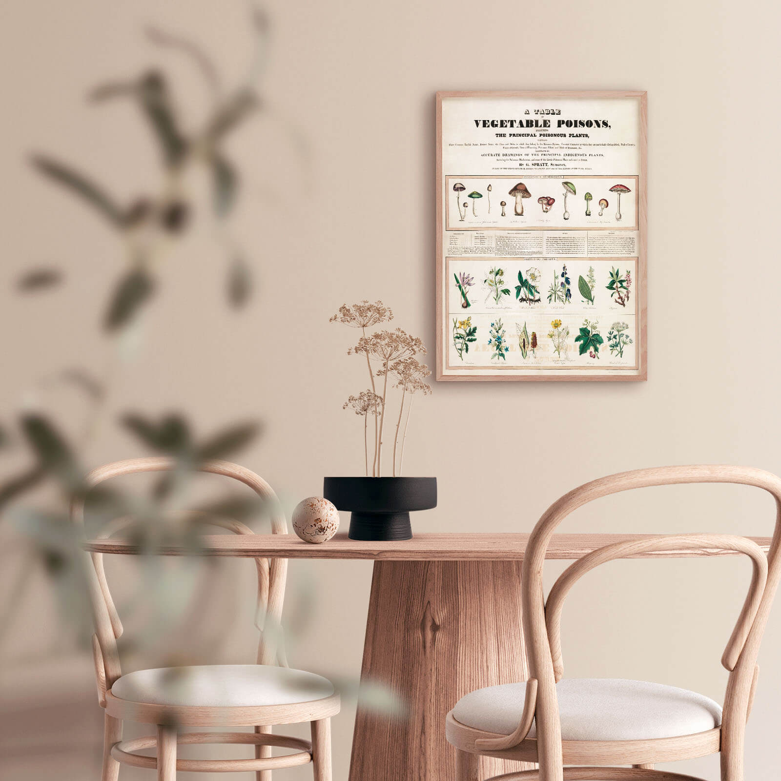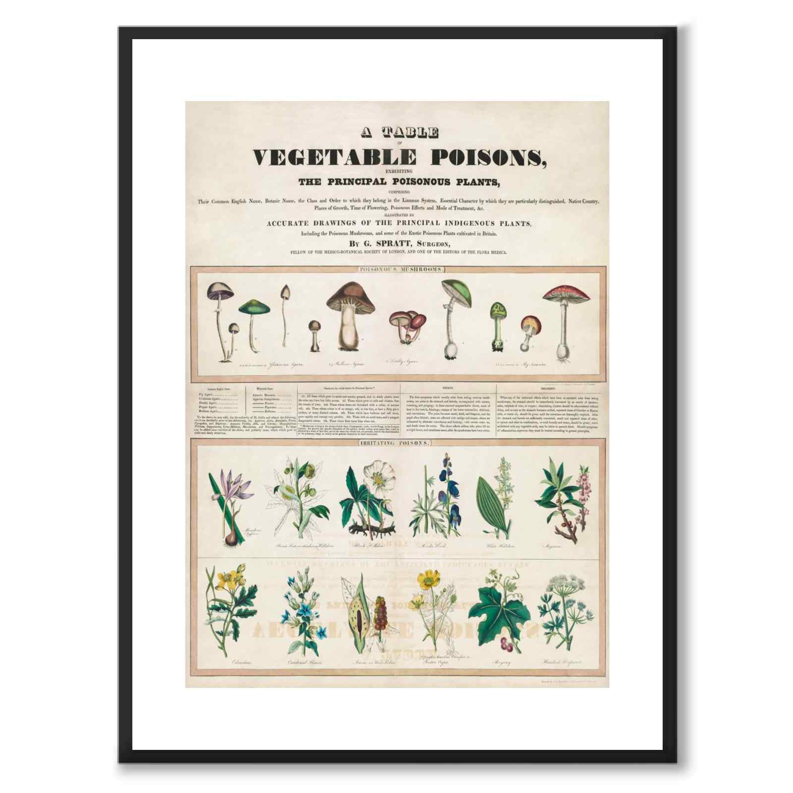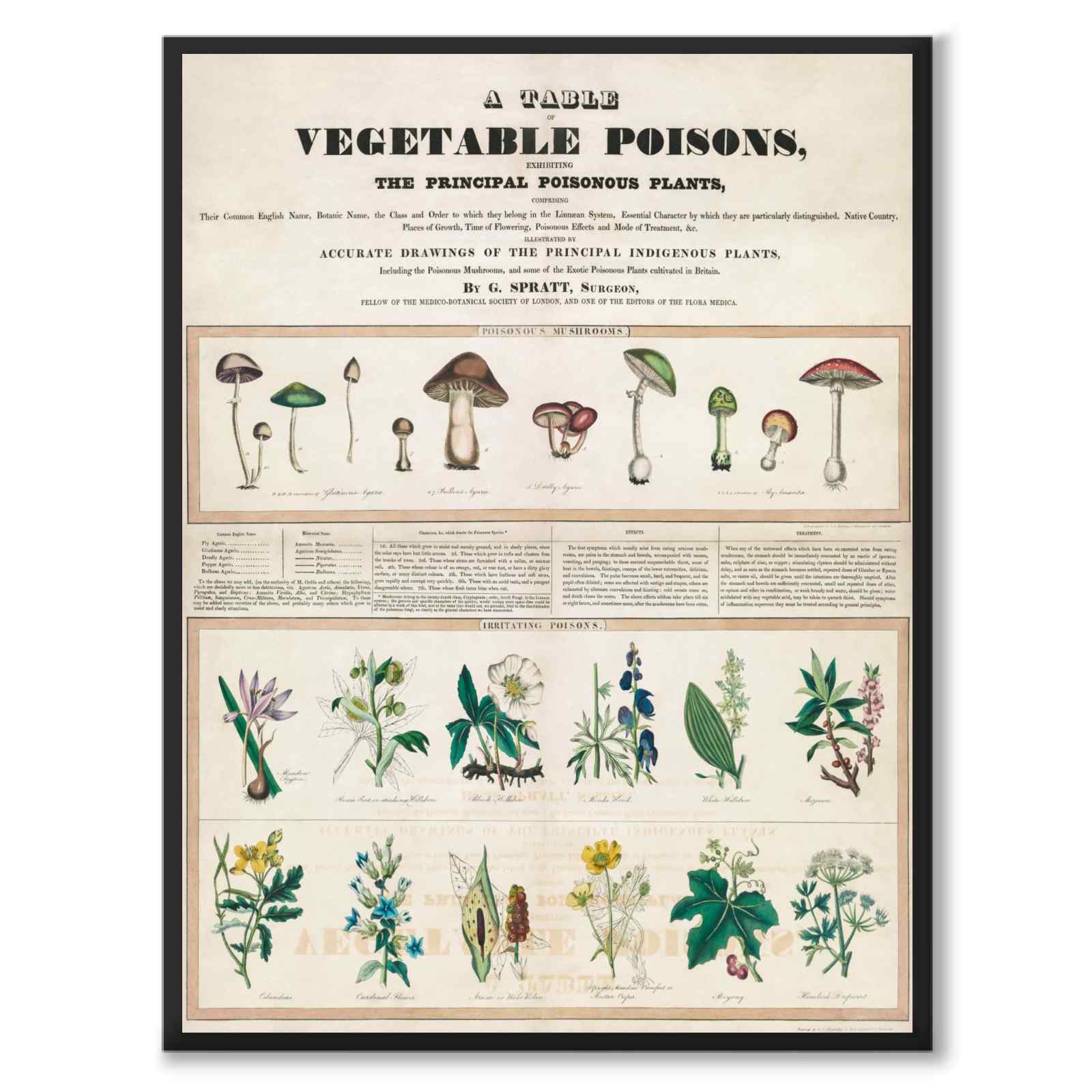 Poster med en klassisk, engelsk skolaffisch med giftiga svampar och växter. Illustrationen ritades på 1840-talet av George Edward Madeley.