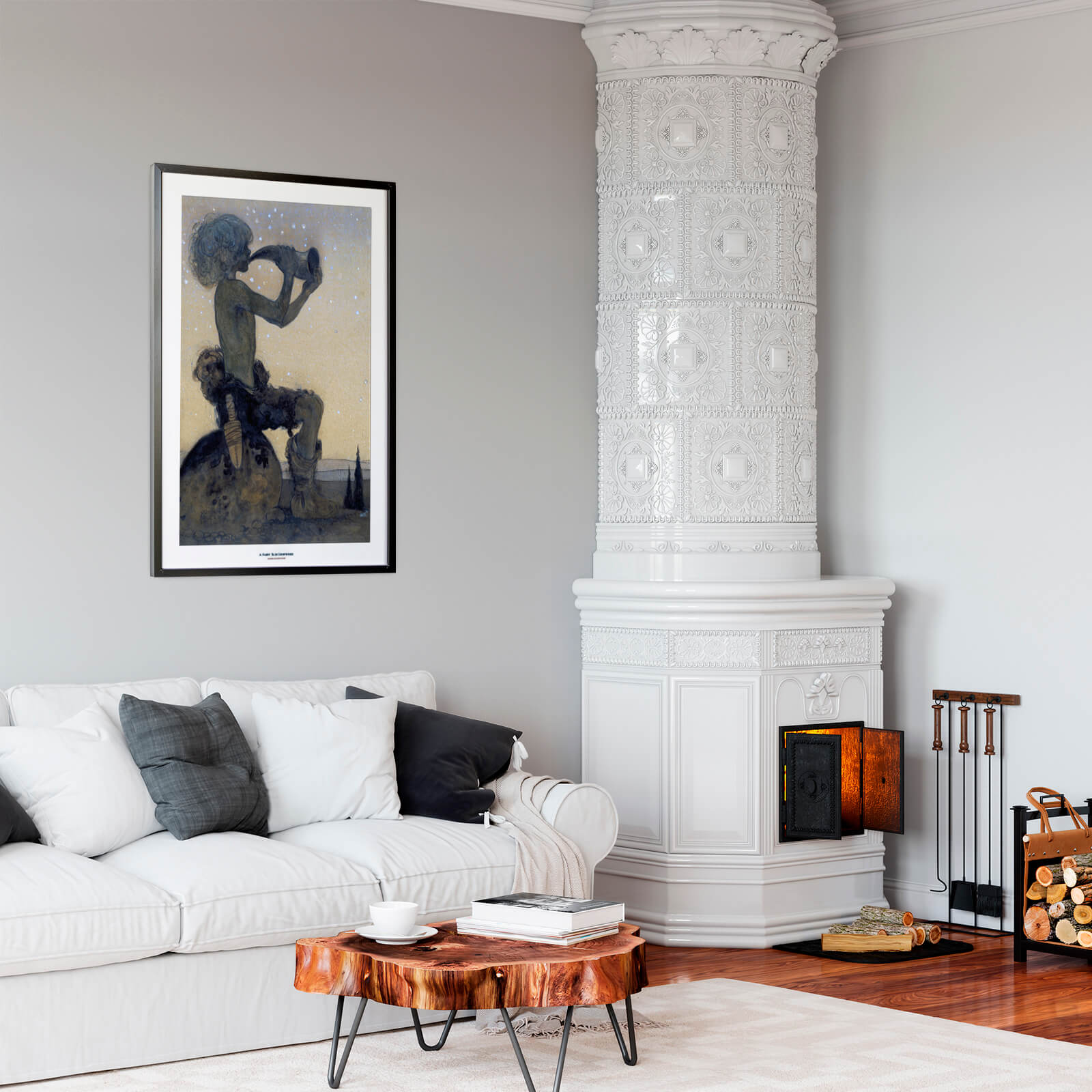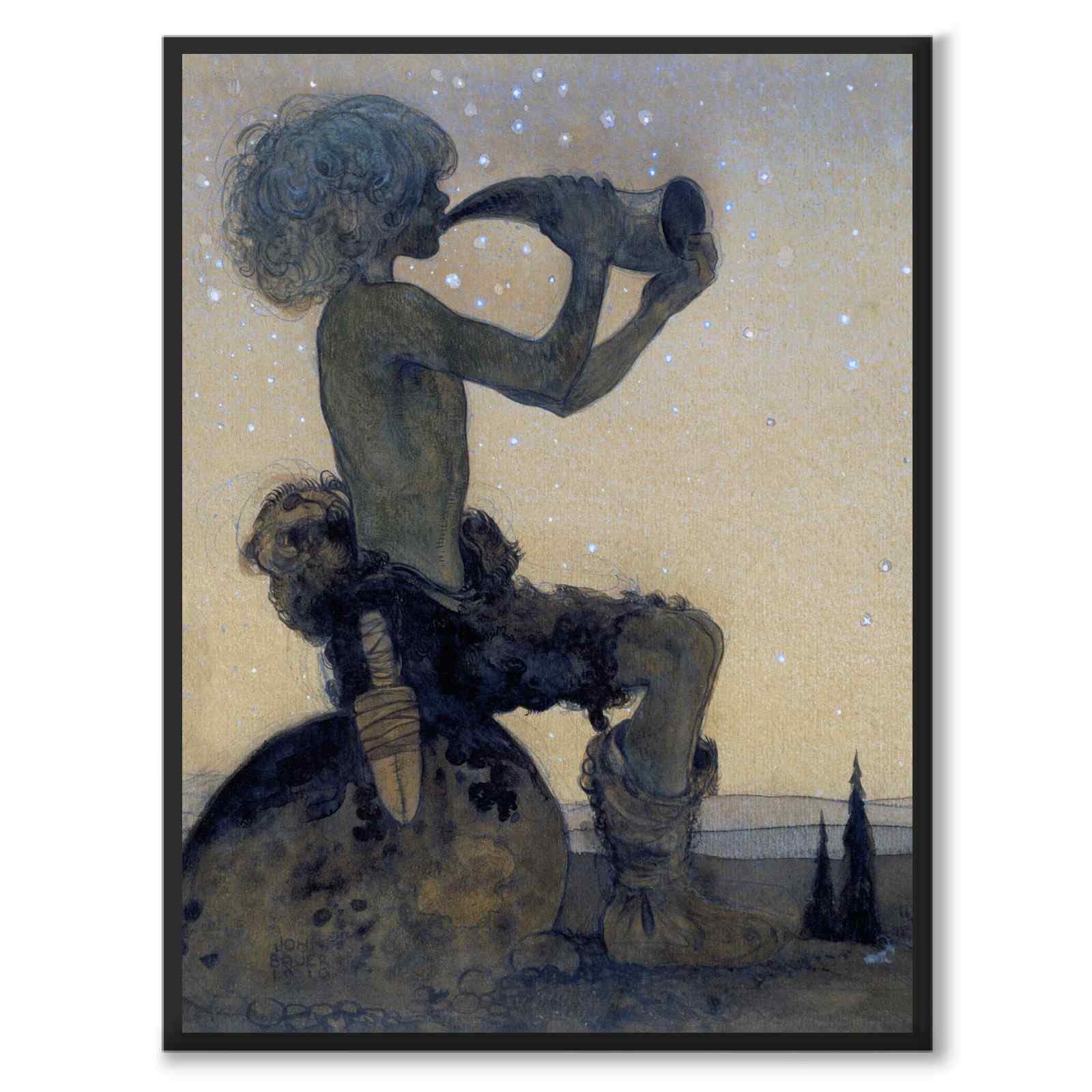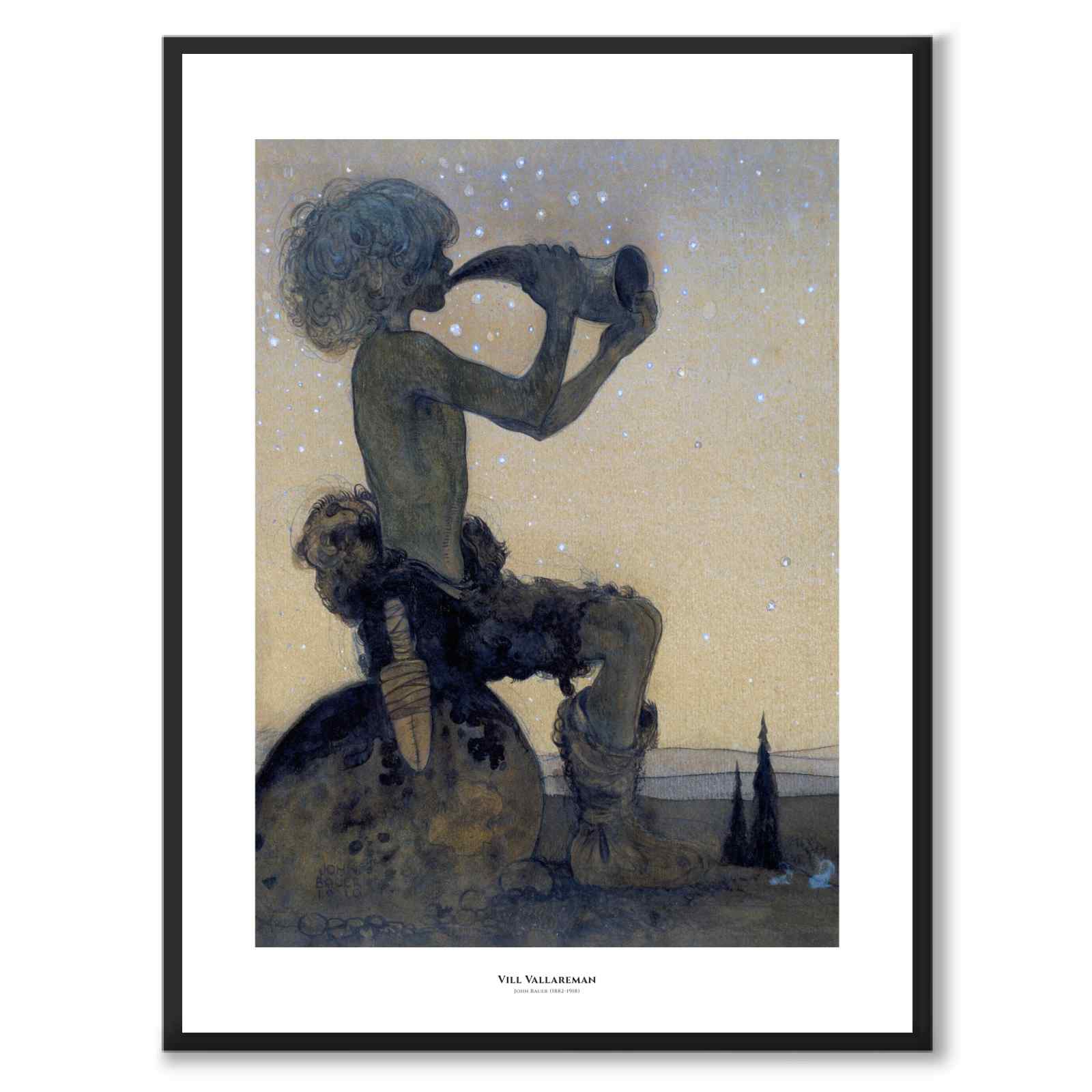 Poster med målningen Vill Vallareman av John Bauer från 1910 (engelsk titel: A Fairy Tale Shepherd). Getherden Vill Vallareman sitter på en sten en sen kväll och spelar vacker musik för sina getter. På kvällshimlen lyser stjärnorna över det öppna landskapet.
