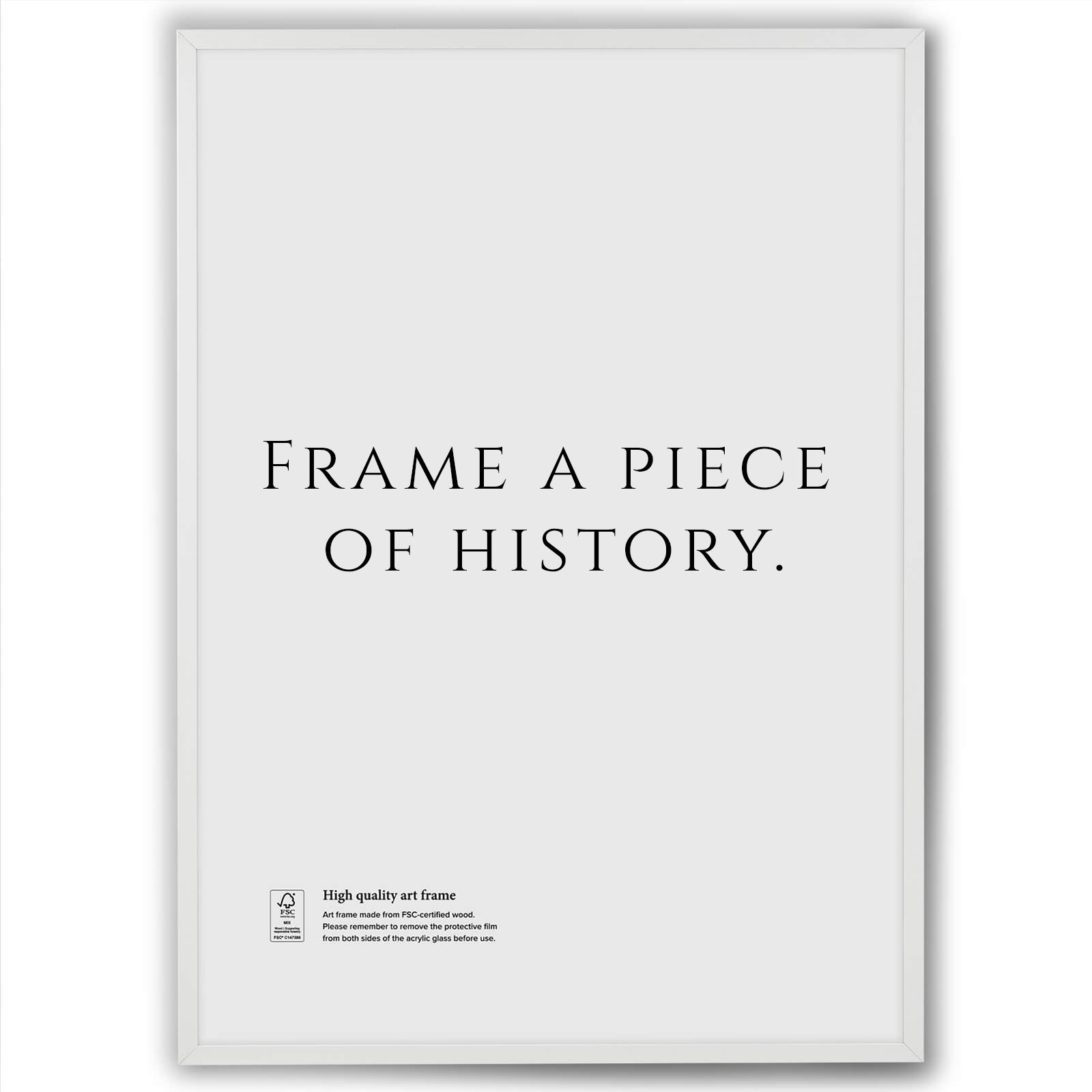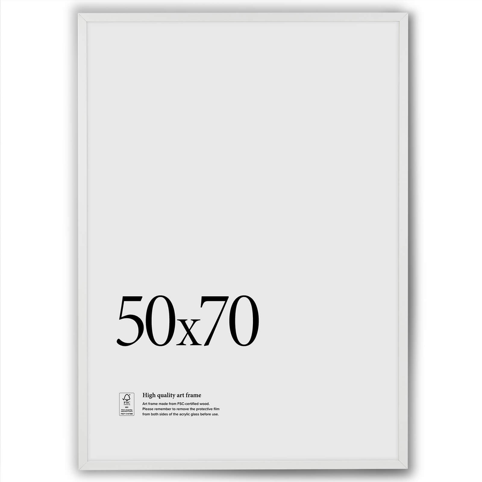 Denna tavelram i vitmålat trä kommer med kristallklart 1.5mm plexiglas och passar perfekt till posters i storlek 21x30, 30x40, 40x50, 50x50, 50x70, 70x100 och 100x140.